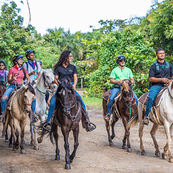 Our extraordinary horseback ride takes you alongside Mameyes River, whose fresh clear waters are perfect for cooling off during the half-hour swimming and refreshments break in the two-hour tour.