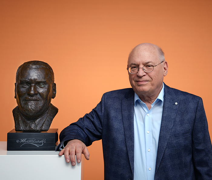 Ulrich Zahoransky next to the bust of his grandfather Anton Zahoransky, born in Elbekostelec (now Czechia), who founded ZAHORANSKY in Todtnau in 1902 and ran it until 1951.